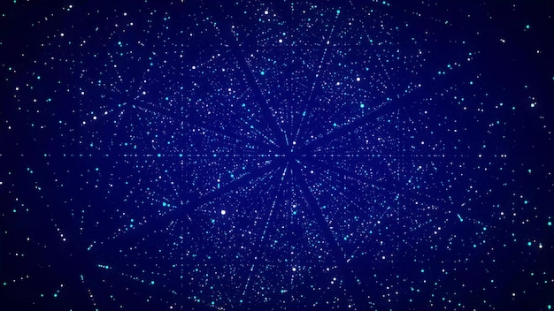 과학 데이터의 추상 미래 무한 흐름 점 배열의 네트워크 구조 우주 배경 빅 데이터 시각화 3D 렌더링