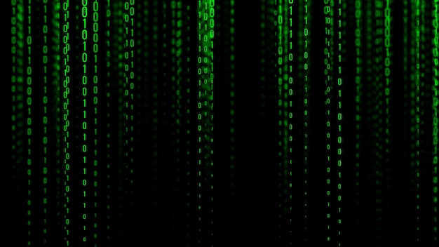 날아다니는 이진 녹색 코드 창의적 배경 인 AI 프로그래밍 및 인공 지능