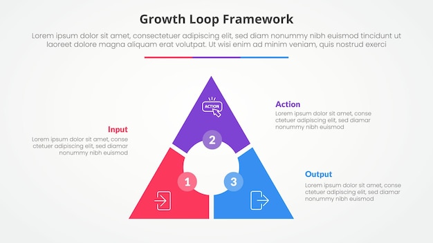 3점 스테이지 템플릿 인포그래픽: 슬라이드 프레젠테이션을 위한 개념, 삼각형 사이클, 원형 서클, 3점 목록, 평평한 스타일