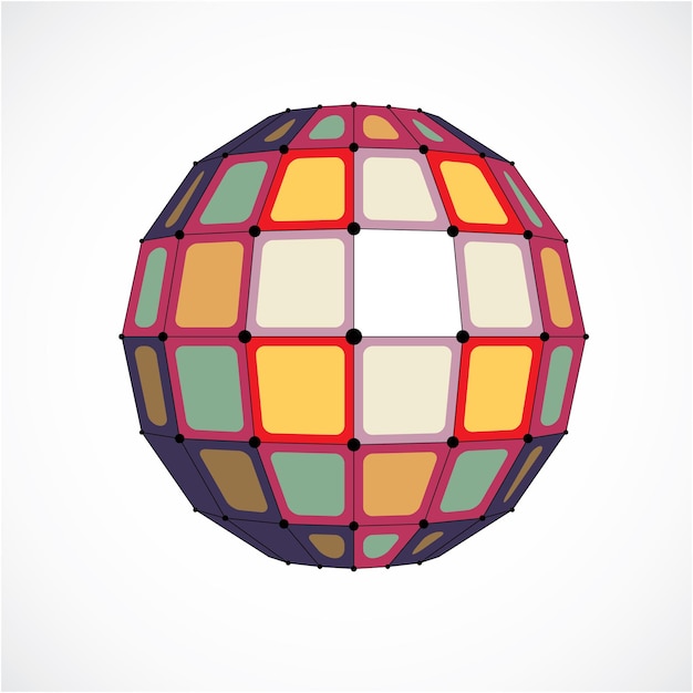 연결된 검은색 선과 점이 있는 추상 3d 면처리된 그림. 사각형으로 만든 벡터 낮은 폴리 보라색 디자인 요소입니다. 격자와 선 메쉬가 있는 사이버네틱 구 모양입니다.