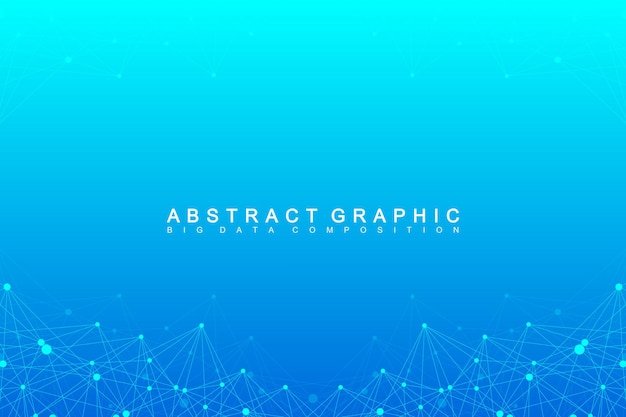 빅 데이터 콤플렉스. 그래픽 추상적인 배경 통신입니다. 깊이의 관점 배경입니다. 화합물 선과 점이 있는 최소 배열. 디지털 데이터 시각화. 벡터 일러스트 레이 션 큰 데이터입니다.
