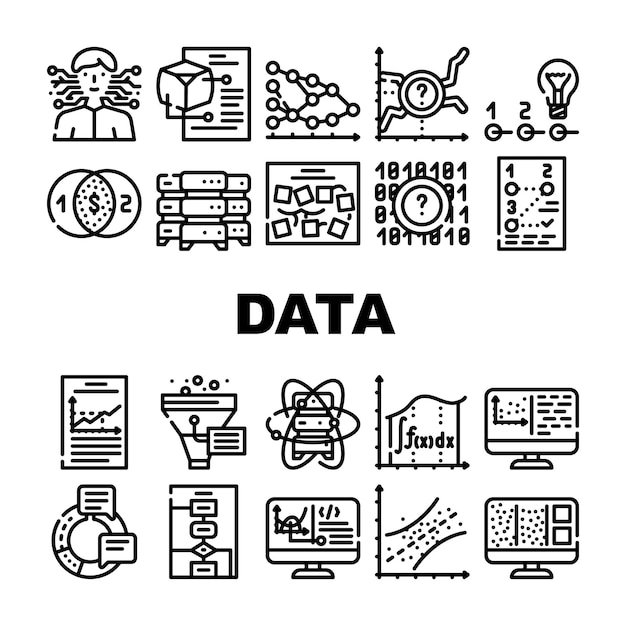 데이터 과학자 작업자 컬렉션 아이콘 벡터 설정