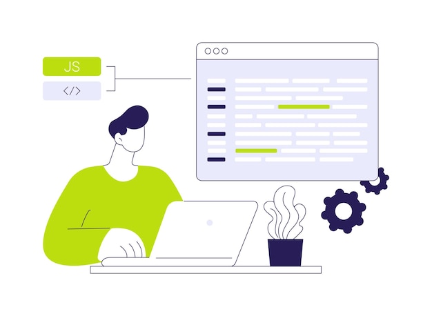 소프트웨어 개발 도구 추상 개념 벡터 그림 소프트웨어 생성을 위한 도구를 사용하는 전문 IT 개발자 현대 기술 프로그래밍 및 코딩 프로세스 추상 은유