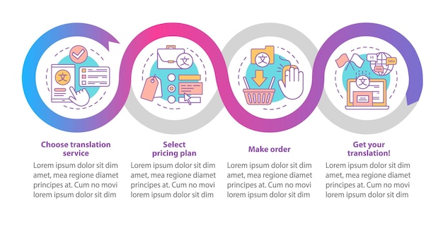 여행 벡터 infographic 템플릿입니다. 여행사. 비즈니스 프레젠테이션 디자인 요소입니다. 4단계 및 옵션이 있는 데이터 시각화. 프로세스 타임라인 차트. 선형 아이콘이 있는 워크플로 레이아웃